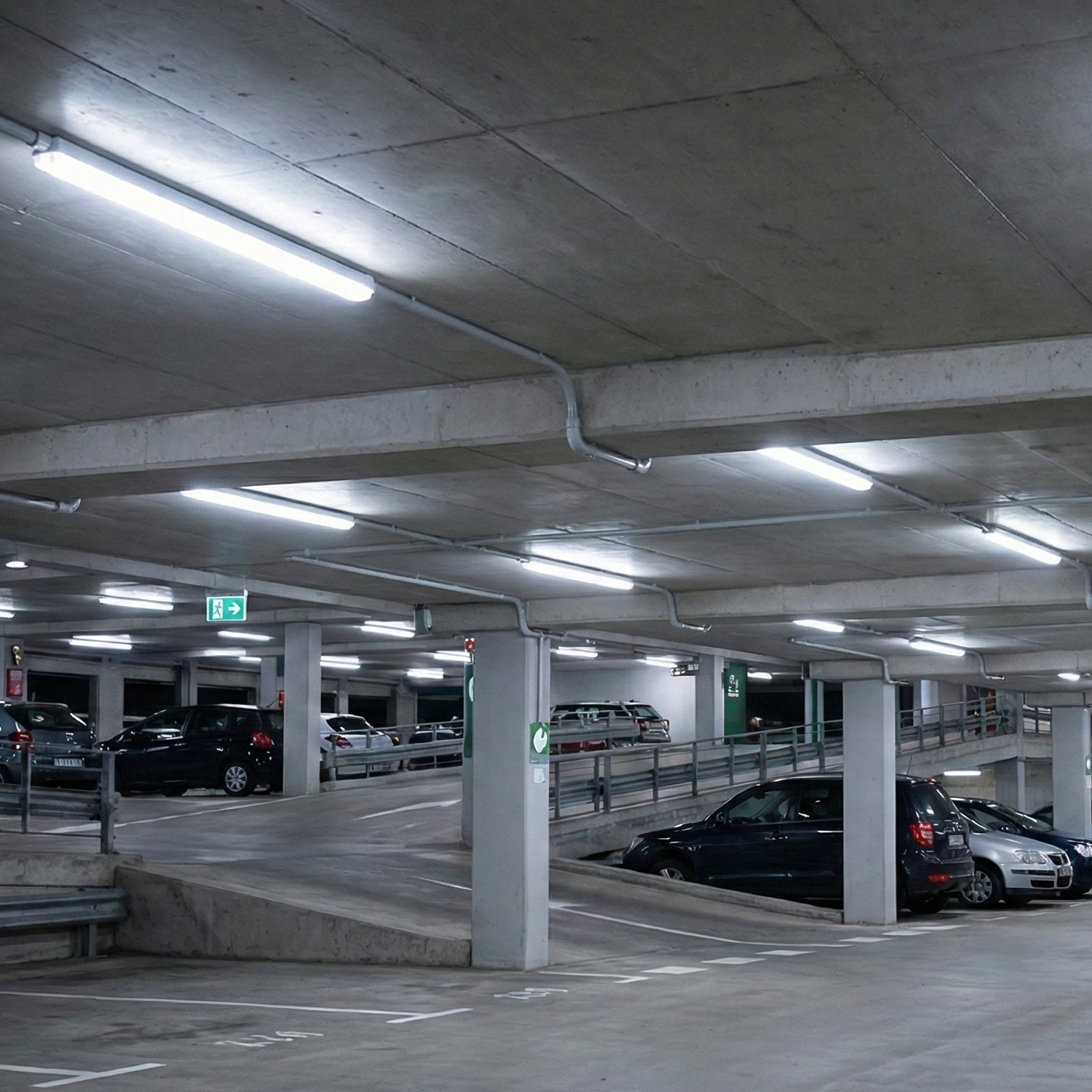 • LED Damp Proof – Robuste Feuchtraumleuchten für Parkhäuser, Werkstätten und Industriehallen.
