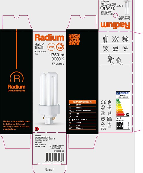 Tous changements concernant lemballage ou le produit sont interdits car ils portent atteinte aux droits de la marque Radium. De plus, les qualités techniques du produit pourraient changer à son désavantage voire mener à sa destruction. Pour ces dommages, Radium décline toute responsabilité.