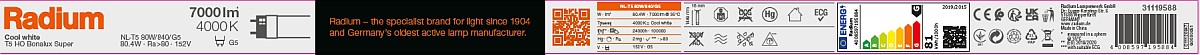 Energielabel - Fluorescent lamp Bonalux®Super , NL-T5 80W/840/G5