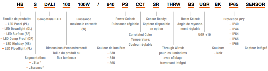 Nomenclature pour nos luminaires LED: un exemple fictif