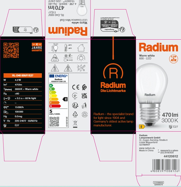 Energielabel - LED Essence Mini-Ball, frosted, RL-D40 830/F/E27