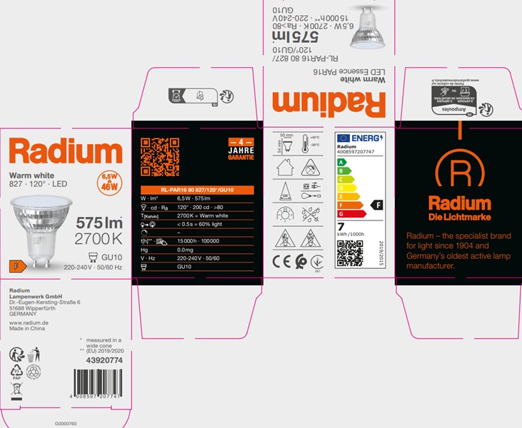 4. LED Essence PAR16, RL-PAR16 80 827/120°/GU10
