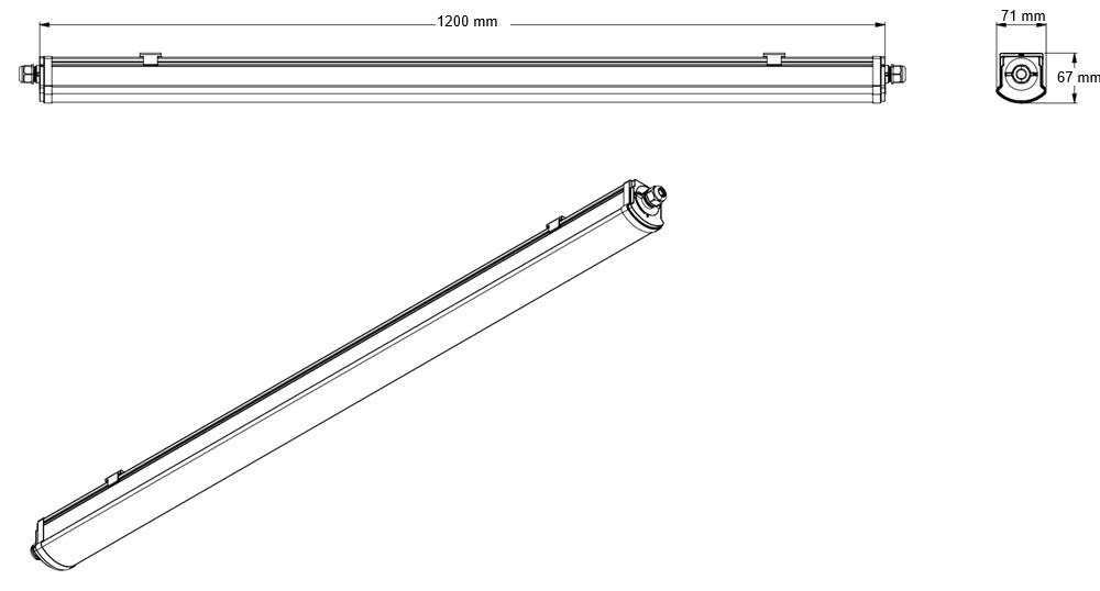 Zeichnung - LED-Feuchtraumleuchte Star IP66, 1200/840 PS SR THRW