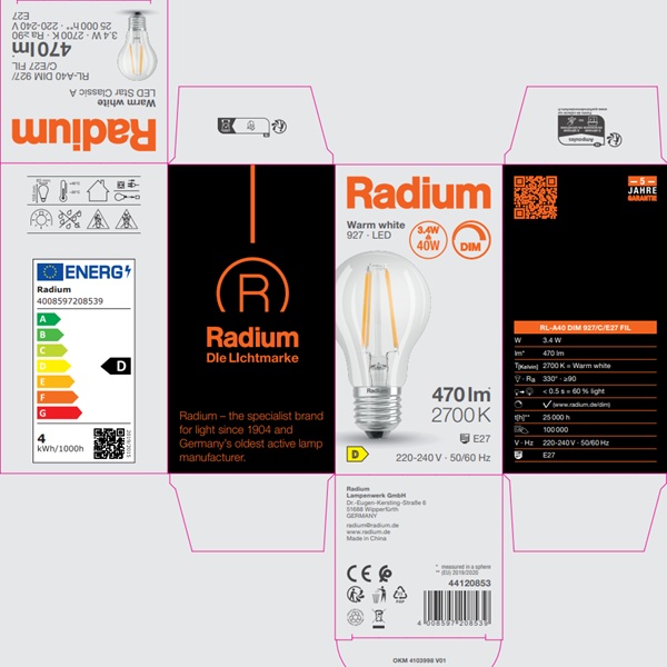 RL-A40 DIM 927/C/E27 FIL